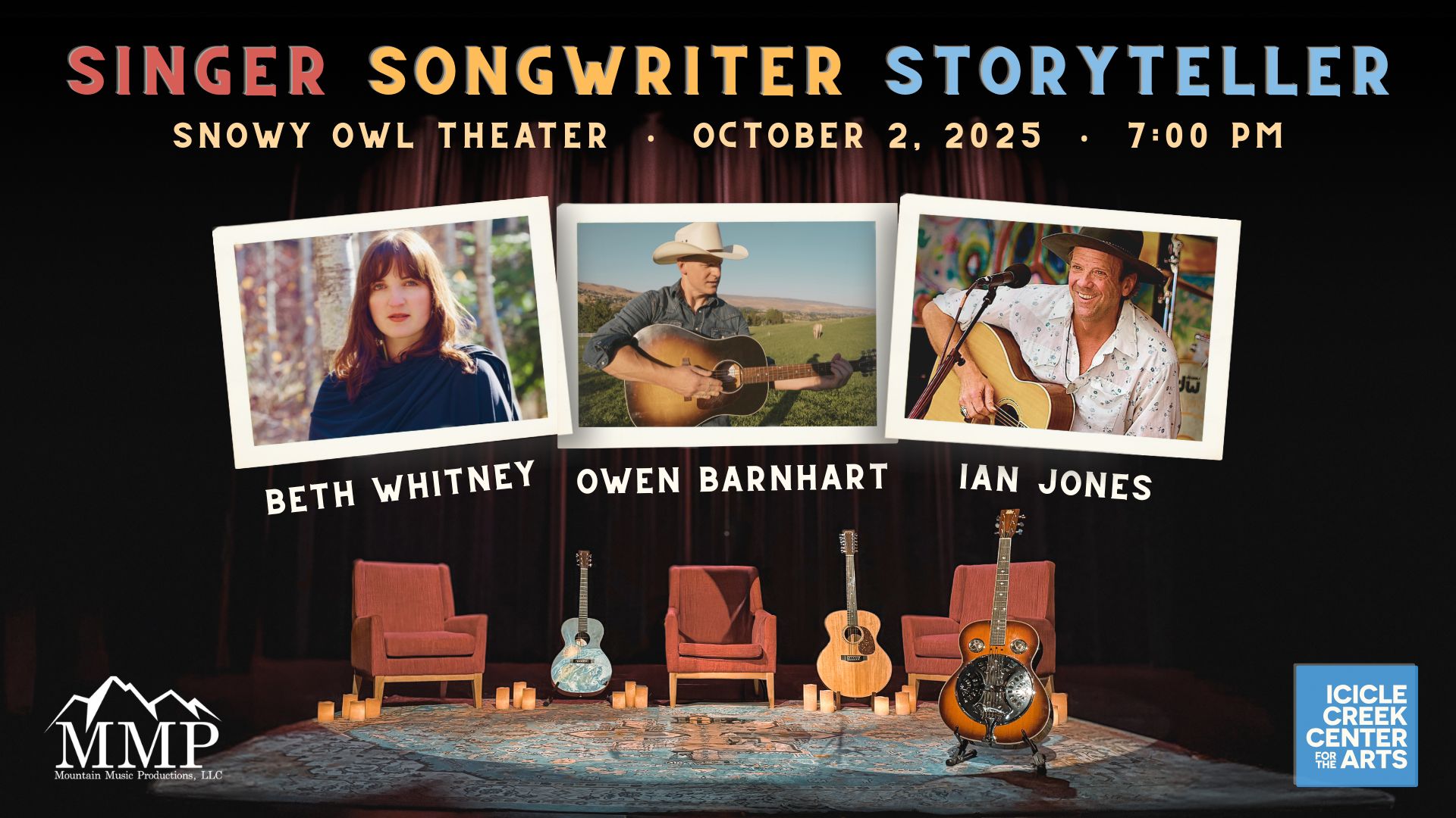 Icicle Creek Center for the Arts is excited to offer the 2025-2026 Singer Songwriter Storyteller Series Pass. This Pass will allow you access to all nine of the performances for the price of eight.